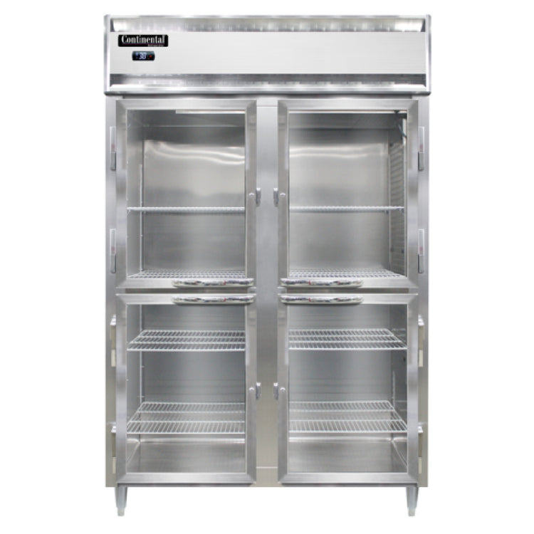 Continental Refrigerator, DL2W-PT-HD-GD-SD, Designer Line Heated Cabinet, 50 cubic ft. capacity, pass-thru, two-section, aluminum exterior & interior, stainless steel front & doors, standard depth cabinet, half-height glass doors on front, half-height stainless steel doors on rear, with electronic controller w/ digital display, NEMA-5-15P, cETLus, NSF, Made in the USA
