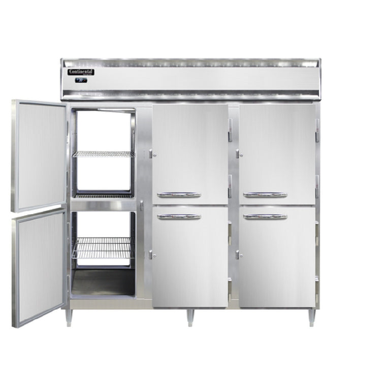 The Continental Refrigerator DL3W-SS-PT-HD Designer Line Heated Cabinet Pass-thru is a versatile and high-capacity solution for maintaining optimal food temperatures in commercial kitchens and food service environments. This three-section heated cabinet offers an impressive 72 cu. ft. capacity, providing abundant space with three shelves per section to accommodate a variety of storage needs. Constructed with a durable stainless steel exterior and interior, it ensures longevity and easy maintenance. Featuring a standard depth cabinet design, the unit is equipped with narrow half-height doors, which enhance accessibility while minimizing heat loss. The electronic control with digital display offers precise temperature management, and the built-in hi-low alarm alerts users to any temperature deviations, ensuring food safety and quality. Meeting both cETLus and NSF standards, the DL3W-SS-PT-HD is engineered to deliver reliable performance and compliance in demanding commercial settings. Its pass-thru design makes it an ideal choice for operations requiring efficient workflow between kitchen and service areas, catering to the needs of diverse markets such as restaurants, hotels, and catering businesses. This heated cabinet stands out as a sophisticated and practical addition to any professional kitchen environment, emphasizing quality, efficiency, and safety.