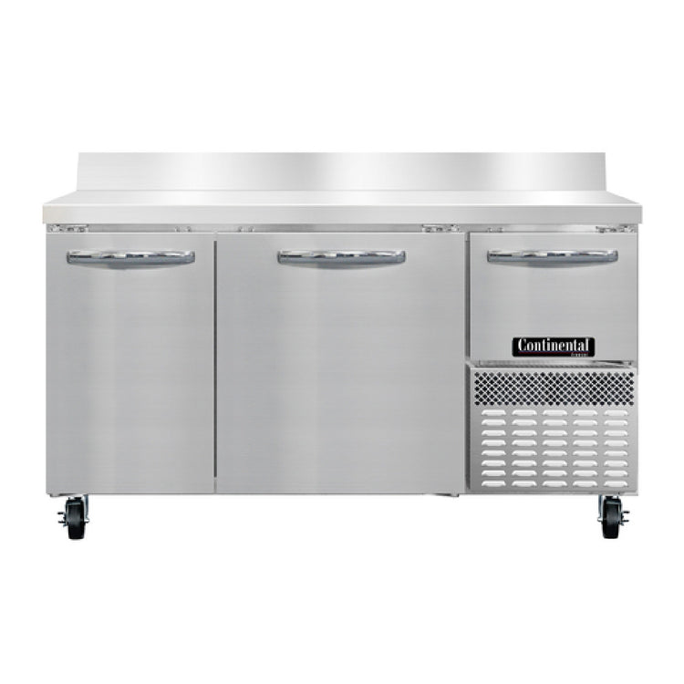 Continental Refrigerator FA60NBS Freezer Base Worktop Unit 60"W 300 Series Stainless Steel Work Top With 6"H Backsplash