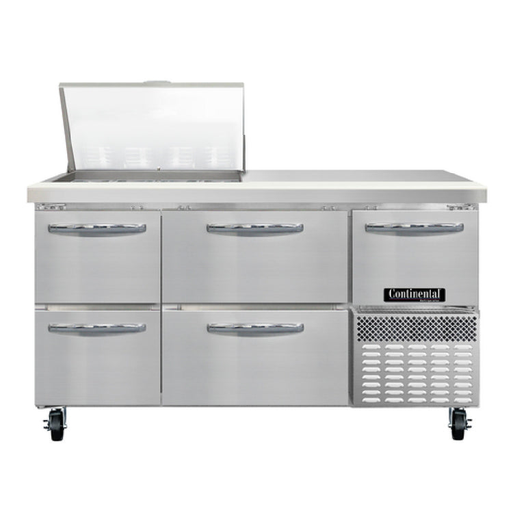 Continental Refrigerator RA60N12M-D Refrigerated Base Sandwich Unit 60"W 300 Series Stainless Steel (Mighty) Top With (12) 1/6 Size X 4" Deep Pans