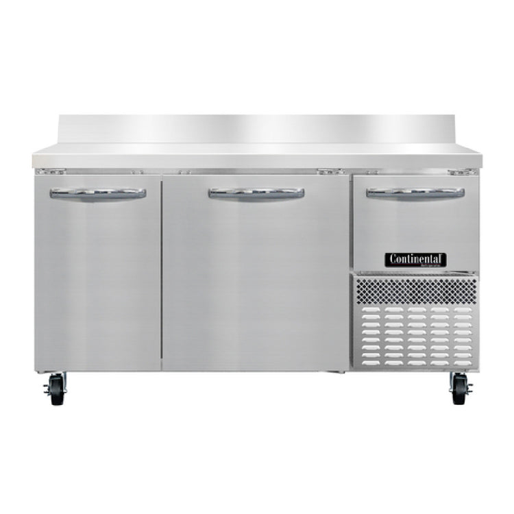 Continental Refrigerator RA60NBS Refrigerated Base Worktop Unit 60"W 300 Series Stainless Steel Work Top With 6"H Backsplash