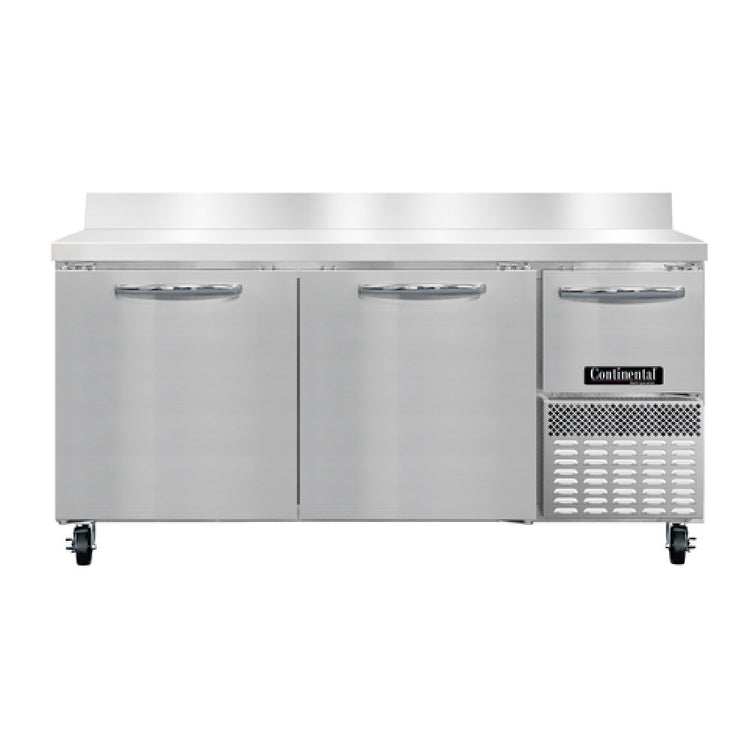 Continental Refrigerator RA68NBS Refrigerated Base Worktop Unit 68"W 300 Series Stainless Steel Work Top With 6"H Backsplash