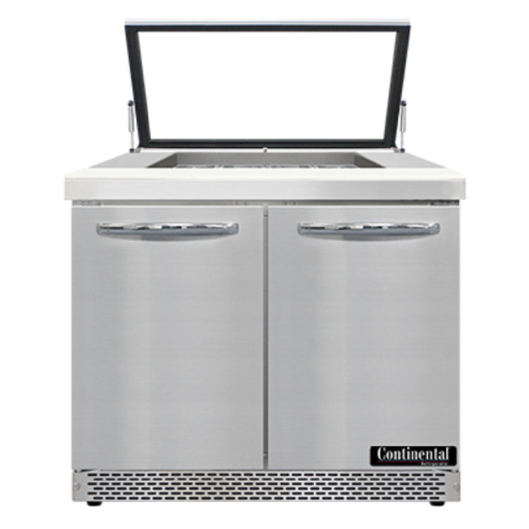 Continental Refrigerator SW36N12M-HGL-FB Mighty Top Sandwich Unit With Hinged Glass Lid