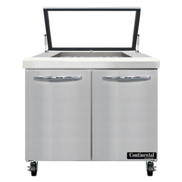 Continental Refrigerator SW36N12M-HGL Mighty Top Sandwich Unit With Hinged Glass Lid