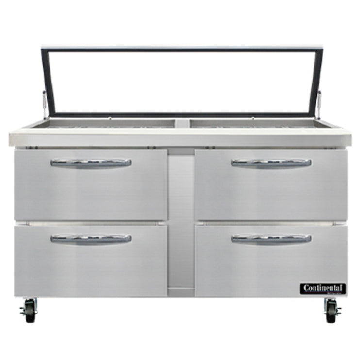 Continental Refrigerator SW60N24M-HGL-D Mighty Top Sandwich Unit With Hinged Glass Lid