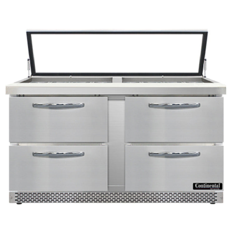 Continental Refrigerator SW60N24M-HGL-FB-D Mighty Top Sandwich Unit With Hinged Glass Lid