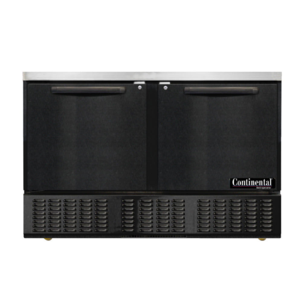 Continental Refrigerator, UC48N-B, Undercounter Refrigerator, 48"W, 9 cu. ft. capacity, two section, (2) field rehingable doors, front breathing, rear mounted self-contained refrigeration, stainless top, baked black enamel finish exterior, aluminum interior, 5" diameter caster plates, R290 Hydrocarbon refrigerant, 1/5hp, cETLus, NSF
