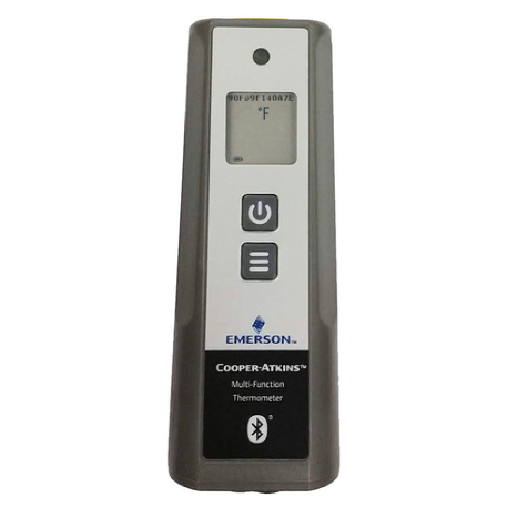 The Cooper Atkins 20200 Multi-Function Thermometer MFT Instrument Only is a precision digital thermometer designed for diverse industrial applications, offering expansive temperature measurement capabilities from -100°F to 1,000°F (-73°C to 538°C) with an accuracy of ±0.5°F/±0.3°C. Engineered without an inclusive probe, it allows users to select their preferred probe type to suit specific needs, adding versatility to its function. This instrument is crafted with ABS housing, incorporating antimicrobial resistance to ensure durability and hygiene in demanding environments. Featuring Bluetooth low energy technology with a 100 ft. RF range, it facilitates seamless data transfer and connectivity, enhancing operational efficiency. The thermometer also boasts an IPX7 waterproof rating, underscoring its resilience in moisture-prone settings. Compliance with CE, FCC, and NSF standards attests to its quality and safety, making it a reliable choice across various sectors. However, users should note that a software package is required, and additional web hosting and support fees may apply. This multifunction thermometer is an invaluable tool for professionals seeking precision and adaptability in temperature measurement tasks.