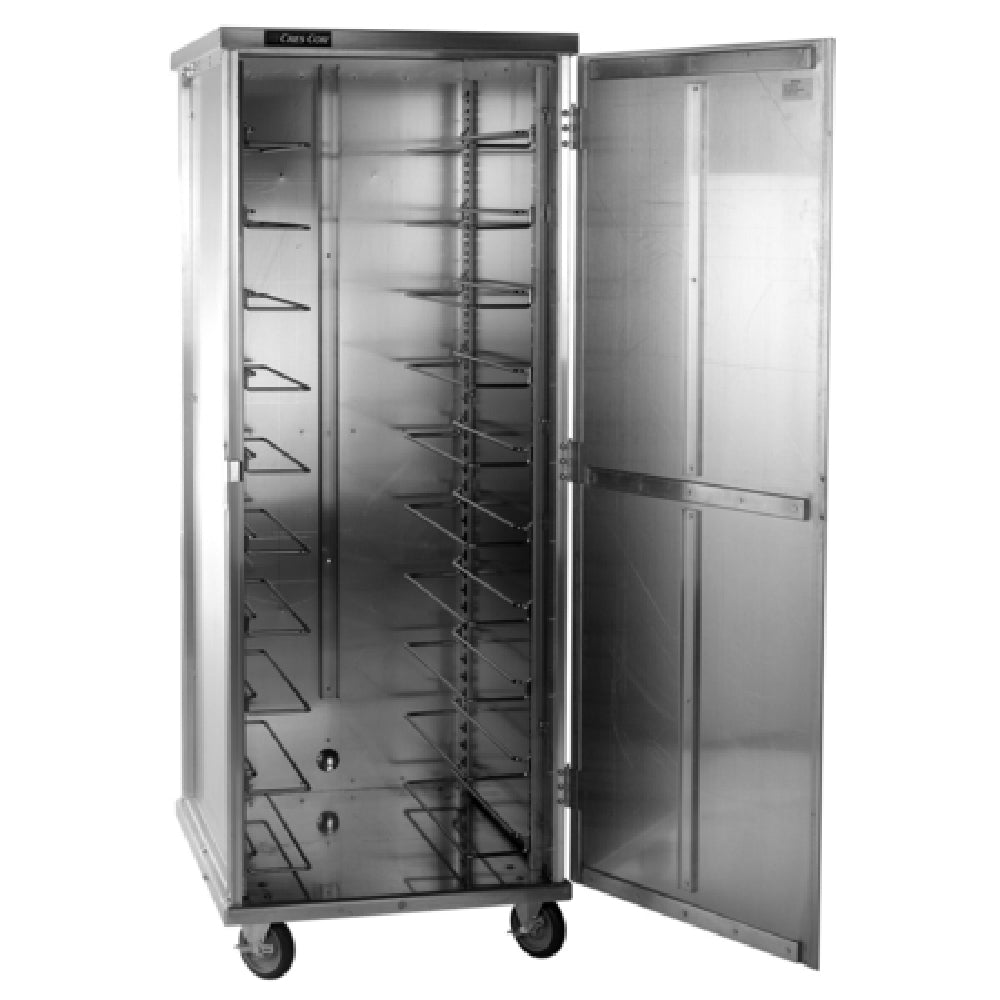 The Cres Cor 103UA13D Cabinet Mobile Enclosed is a versatile unit designed for optimal storage and mobility needs within the food service industry. This non-insulated cabinet features a single compartment that can accommodate up to 13 sets of universal angles pan slides on adjustable 1-1/2" centers, providing flexibility for various storage configurations. The cabinet is equipped with a reinforced door that swings a full 270 degrees, facilitating easy access to the interior. A gravity-type latch ensures secure closure, while an included card clip allows for convenient labeling. The cabinet is highly maneuverable, featuring four 5" swivel casters, two of which are braked, allowing for both mobility and stability as needed. Constructed from Hi-Tensile aluminum for both the exterior and interior, the cabinet offers a durable and lightweight solution. This product is NSF certified, emphasizing its compliance with rigorous health and safety standards. The Cres Cor 103UA13D is an ideal choice for commercial kitchens, catering operations, and institutional facilities, providing robust and flexible storage solutions with a focus on durability and ease of use. Its design ensures it can meet the varying demands of different segments within the industry effectively.