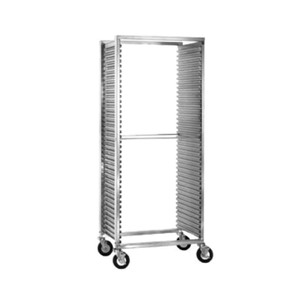 The Cres Cor 2101841A Utility Rack Mobile Wide-opening is a versatile and high-capacity storage solution designed for commercial kitchens and food service operations. This full height utility rack boasts closed sides and corrugated sidewalls, which double as pan slides to accommodate 18" x 26" pans, spaced on 1-1/2" centers for efficient storage. With a substantial 39 pan capacity, it is ideal for establishments needing to store and transport large quantities of pans. The side loading feature allows for easy access and organization, enhancing workflow efficiency. Constructed from fully welded Hi-Tensile aluminum, the rack promises durability and long-lasting performance. The mobility of this utility rack is ensured by four 5" swivel casters, two of which are braked for secure positioning when needed. The Cres Cor 2101841A Utility Rack is NSF certified, indicating compliance with rigorous public health and safety standards. This utility rack is an essential asset for any professional kitchen, providing robust storage capabilities with an emphasis on reliability and ease of use across various market segments within the food service industry.