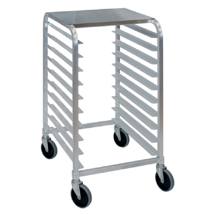 The Cres Cor 275381810KDTA Knock Down Utility Rack Mobile Half Height is engineered for efficiency and durability, making it an essential tool in various industrial and commercial settings. This utility rack features (10) 18-inch by 26-inch extruded aluminum angles that are meticulously welded to frames spaced on 3-inch centers, providing robust support for diverse storage needs. The 18-gauge stainless steel top shelf fastens securely, ensuring additional reliability and load-bearing capacity. Constructed from a Hi-Tensile aluminum frame, this rack is designed for longevity and resilience in demanding environments. Its mobility is enhanced by 5-inch swivel casters, allowing easy maneuverability across different spaces. Despite being a knock-down rack, it ships fully assembled, ensuring immediate usability without the hassle of assembly. Certified by NSF, this utility rack meets stringent public health and safety standards, making it suitable for food service industries and other sectors requiring rigorous compliance. The versatile design and compact half-height profile make the Cres Cor 275381810KDTA an optimal choice for businesses seeking a reliable storage solution that combines practicality with space-saving efficiency. Whether used in restaurants, catering services, or industrial kitchens, this utility rack delivers exceptional performance and value.