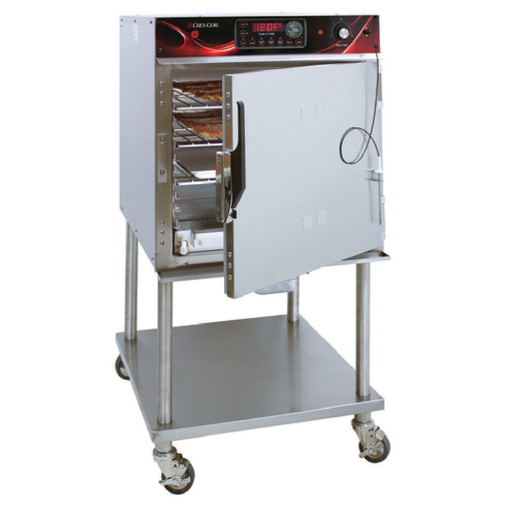 The Cres Cor 767CHSKDX Cook/Hold Cabinet Mobile One Compartment is a versatile and robust unit designed for professionals seeking reliable cooking and holding solutions. This cabinet features a stainless steel construction for both its interior and exterior, ensuring durability and ease of maintenance. Equipped with a smoker option, this insulated cabinet includes removable pan slides with 11 positions on 1-3/8 inch centers, accommodating various cooking needs. It comes with three stainless steel wire grids, enhancing its flexibility in food preparation. The unit is fitted with deluxe LED oven controls, offering 18 programmable menu options, and includes a 6-inch food probe for precise cooking. A field reversible door allows for adaptable placement within any kitchen setup. The cook and hold cycles, alongside an anti-microbial latch, present a safe and efficient cooking environment. The cabinet is mounted on four 3-1/2 inch swivel casters, two of which are braked for stability, while the other two are rigid. Additionally, the Cres Cor 767CHSKDX is certified by cCSAus and CSA-Sanitation, underscoring its compliance with industry standards. This cabinet is an exceptional choice for catering services, restaurants, and institutional kitchens that value quality and performance in their culinary equipment.