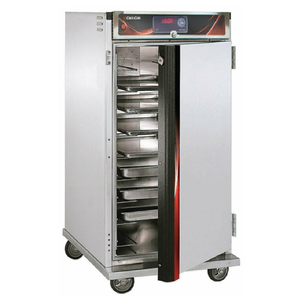 The Cres Cor H137UA9DZ Correctional Cabinet Mobile Heated Insulated is a premium choice for facilities requiring secure and efficient food storage solutions. This sophisticated unit incorporates a top-mount heater assembly, ensuring consistent temperature maintenance for various food items. Equipped with recessed push/pull handles, it provides ease of maneuverability. Inside, it houses nine sets of universal angle slides, accommodating pan sizes from 22" x 20" to 18" x 26", all riveted securely on 4-1/2" centers. The solid state electronic control with an LED digital display enhances operational precision, while the locking security panel ensures safety during transport. The cabinet features one self-closing solid door with a magnetic latch, key lock handle, and a transport latch with a hasp lock, all designed to maximize security. Constructed with a resilient aluminum exterior and interior, this unit promises durability. Its mobility is supported by four heavy-duty 5" swivel casters, with two featuring brakes for added stability. Certified by NSF and cCSAus, this cabinet meets high standards of safety and performance, making it an ideal choice for correctional facilities and other institutional settings that demand robust and reliable heated storage solutions.