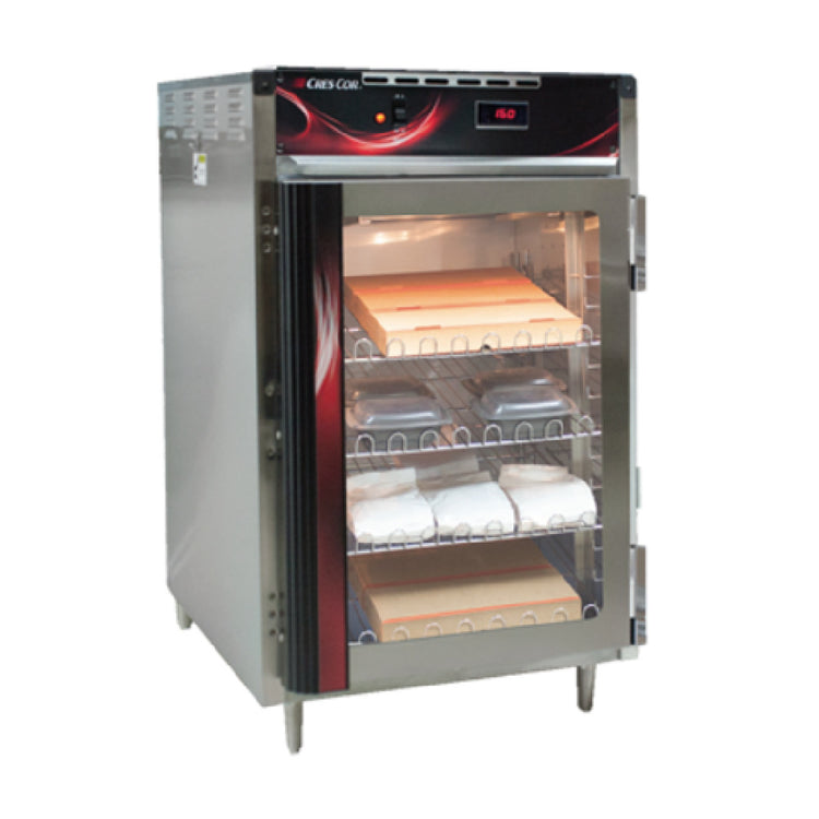 The Cres Cor H138NPSCC1MC5Q Cabinet Mobile Heated Pass-thru is a versatile, half-size heating solution designed for various professional culinary environments. This counter model cabinet features a robust insulated construction with a top-mount heater assembly, ensuring optimal temperature retention. Crafted with high-quality stainless steel and a durable steel interior, it is built to withstand rigorous daily use. The cabinet is equipped with a tempered glass viewing window on the front door, allowing for easy monitoring of contents without compromising heat efficiency. Inside, the Cres Cor H138NPSCC1MC5Q offers flexibility and customization with its two adjustable gravity-fed wire shelves and four adjustable gravity-fed merchandising racks, accommodating a range of product sizes and configurations. Enhanced visibility is provided by five interior halogen lights, illuminating the contents for quick access and presentation. The cabinet stands on 4-inch adjustable legs, offering stability and easy installation on various surfaces. Certified by both NSF and CSA, this unit complies with rigorous health and safety standards, making it a reliable choice for any food service operation. Whether in a bustling restaurant kitchen or a catering setup, the Cres Cor H138NPSCC1MC5Q delivers consistent performance and adaptability to meet diverse operational needs.