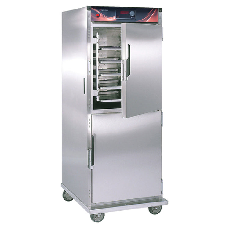 The Cres Cor H138S1834D Cabinet Mobile Heated Insulated is a robust, high-capacity unit meticulously engineered for the food service industry. This cabinet features a top-mount heater assembly that ensures consistent temperature maintenance, making it ideal for keeping food warm across a variety of dining settings. With an impressive capacity to accommodate 32 pans measuring 18" x 26" on 1-1/2" centers, it efficiently maximizes storage space. Designed with a recessed push/pull handle and magnetic latch, the cabinet ensures easy maneuverability and secure closure. The anti-microbial latches enhance hygiene, making it particularly suited for environments requiring stringent cleanliness standards. The reversible Dutch doors provide flexible access options, while the stainless steel construction offers exceptional durability. Equipped with four heavy-duty 5" swivel casters, two of which have brakes, it provides easy mobility and stability. Certified by NSF and cCSAus, and recognized with the ENERGY STAR® rating, this cabinet meets rigorous safety and energy efficiency standards. The Cres Cor H138S1834D is a versatile solution for catering services, restaurants, and institutional kitchens, providing exceptional heat retention and mobility for efficient food service operations.