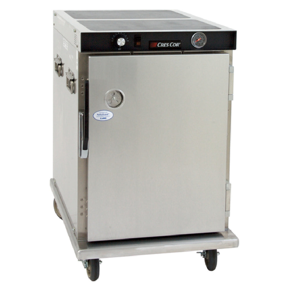 The Cres Cor H33912188C Cabinet Mobile Heated Half-height is a highly efficient solution designed for the demanding environments of commercial kitchens and catering services. This half-height mobile cabinet is insulated and features channel pan slides, offering a substantial capacity to hold either eight 18" x 26" pans or eight 12" x 20" pans. The slides are ingeniously positioned on 1-1/2" centers, providing adaptable spacing for various pan sizes. Equipped with anti-microbial latches, this unit ensures superior hygiene standards, crucial for food safety. An analog thermometer offers precise temperature monitoring, vital for maintaining optimal food conditions. Constructed with a durable aluminum exterior and interior, it combines strength with a lightweight design. The cabinet's mobility is ensured by four heavy duty 5" swivel casters, of which two are braked, allowing for stable positioning when needed. Certificated by cCSAus and CSA, the Cres Cor H33912188C upholds rigorous safety and quality standards, making it a dependable choice for businesses seeking reliable heated storage solutions. Its engineering and features cater to various industry segments, including restaurants, hotels, and catering companies, where efficiency and food safety are paramount.