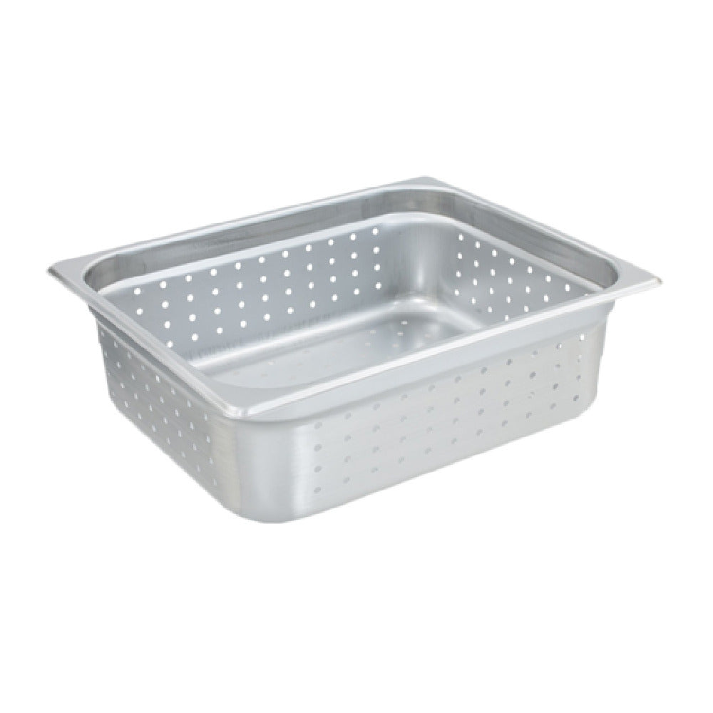 The Crestware 5124P Steam Table/Holding Pan 1/2 Size 4" Deep is a versatile kitchen essential, specifically designed to meet the diverse needs of the food service industry. Made from high-quality 18/8 stainless steel, this pan offers durability and resistance to corrosion, ensuring longevity in demanding environments. The pan is 1/2 size with a depth of 4 inches, making it ideal for a variety of food storage and serving applications. Its perforated design facilitates efficient drainage, making it particularly useful for holding steamed or boiled food items. The inclusion of a Saf-T-Rim provides additional safety by reducing the risk of injury during handling. Featuring a flat edge and a jam reduction shoulder, this pan ensures a snug fit in steam tables or holding units, minimizing spills and maintaining food hygiene standards. With a construction of 24-gauge steel, this pan strikes an optimal balance between strength and weight, making it easy to handle while maintaining its shape under pressure. The NSF certification highlights its compliance with health and safety regulations, further enhancing its appeal for professional kitchens. The Saf-T-Stak feature simplifies storage, ensuring efficient use of space while maintaining organization in busy kitchen environments.