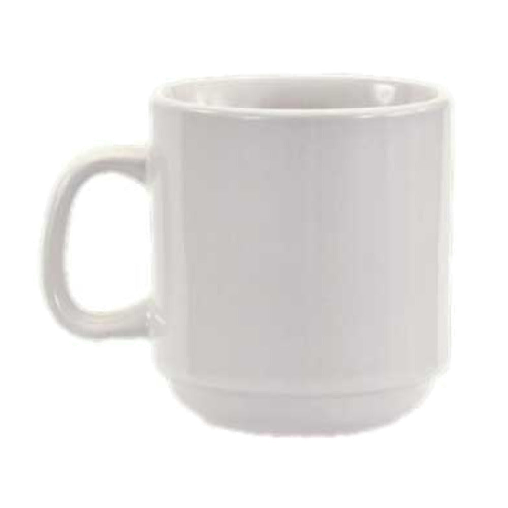 The Crestware AL15 Mug 10 Oz. Stackable is an expertly crafted ceramic mug designed for versatility and durability, catering to the diverse needs of various market segments within the food service industry. With a 10-ounce capacity, this mug is ideal for serving a variety of beverages, from hot coffee to refreshing iced tea. Its stackable design optimizes storage efficiency, making it a practical choice for bustling cafes, restaurants, and catering operations where space is at a premium. Constructed from vitrified ceramic, the mug is both oven and microwave safe, providing exceptional thermal resistance for reheating and maintaining beverage temperatures. The Alpine White finish offers a classic and sophisticated appearance that complements any tabletop setting. This product is sold exclusively in full case quantities, with each case containing 3 dozen mugs, ensuring ample supply for high-demand environments. The Crestware AL15 Mug 10 Oz. Stackable is a valuable asset for establishments seeking reliable, high-quality drinkware that promises durability and functionality in equal measure.