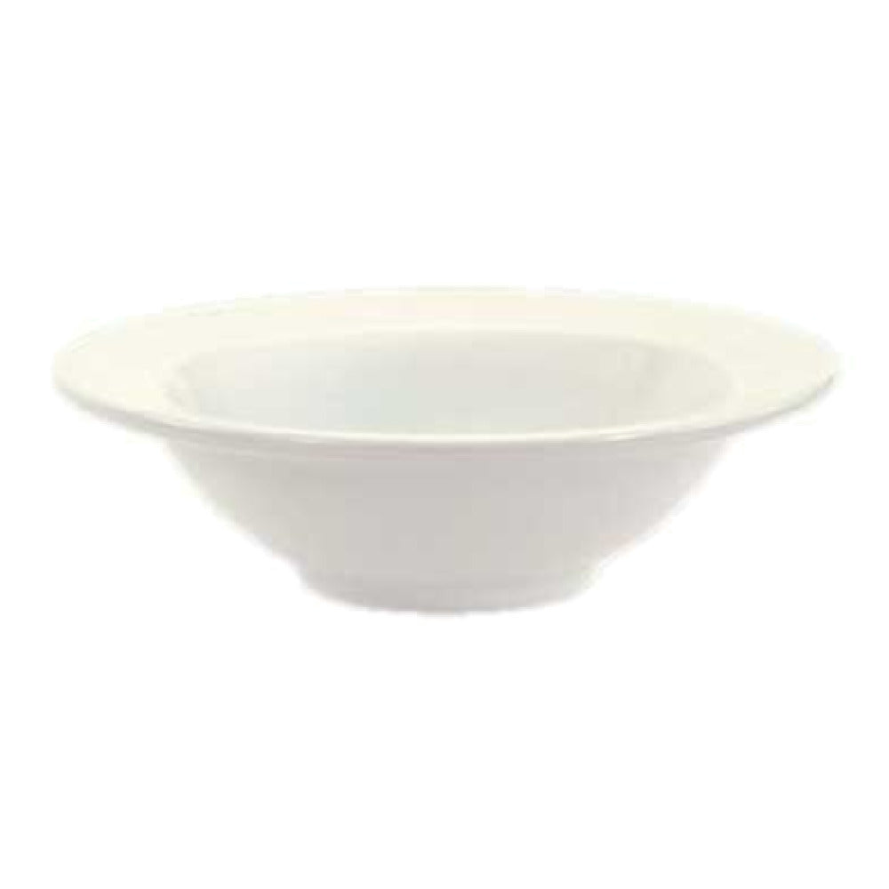 The Crestware AL35 Rim Bowl 14 oz. 7-1/2" is a meticulously crafted ceramic product designed for versatility and durability in various professional settings. Its vitrified construction ensures robustness and longevity, making it an ideal choice for high-demand environments such as restaurants, catering services, and hospitality venues. The bowl’s 14-ounce capacity, coupled with a 7-1/2" diameter, offers ample space for serving a variety of dishes, from soups and salads to desserts. This product is Alpine White in color, lending a classic and elegant aesthetic to any table setting. A standout feature is its oven and microwave safety, which provides flexibility in food preparation and serving directly from cooking appliances to the table. This practicality is enhanced by the fact that the bowl is sold only in full case quantities, packed by 3 dozen per case, making it a convenient option for large-scale operations. This efficient packaging design minimizes reorder frequency and ensures consistent inventory levels. The Crestware AL35 Rim Bowl combines aesthetic appeal with functional design, making it a valuable addition to any commercial kitchen or dining establishment, providing reliable performance and enhancing the dining experience for patrons.