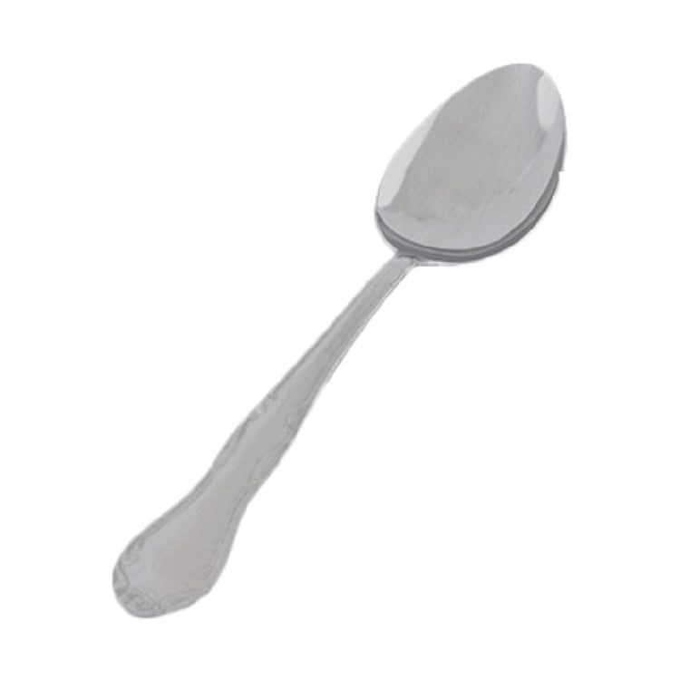 The Crestware BEL708 Dessert Spoon 7" Scrolled Motif Pattern exemplifies sophistication and durability, designed for professional and domestic settings that demand both style and functionality. Measuring 7 inches in length, this dessert spoon is part of the Belinda line, known for its elegant scrolled motif pattern, which adds a touch of visual interest to any table setting. The spoon is crafted from high-quality 18/0 stainless steel, ensuring a heavy weight that conveys a sense of balance and sturdiness in hand. Its bright vibro finish not only enhances its aesthetic appeal but also makes it resistant to the wear and tear of regular use. The choice of 18/0 stainless steel indicates a nickel-free composition, making it an excellent option for establishments that cater to individuals with nickel allergies while maintaining affordability. This dessert spoon is ideal for various segments within the hospitality industry, from upscale restaurants to casual dining venues, as well as for home use, where an extra touch of refinement is desired. The Crestware BEL708 seamlessly combines functionality with a classic design, making it a practical addition to any flatware collection, ensuring both performance and elegance in serving desserts.