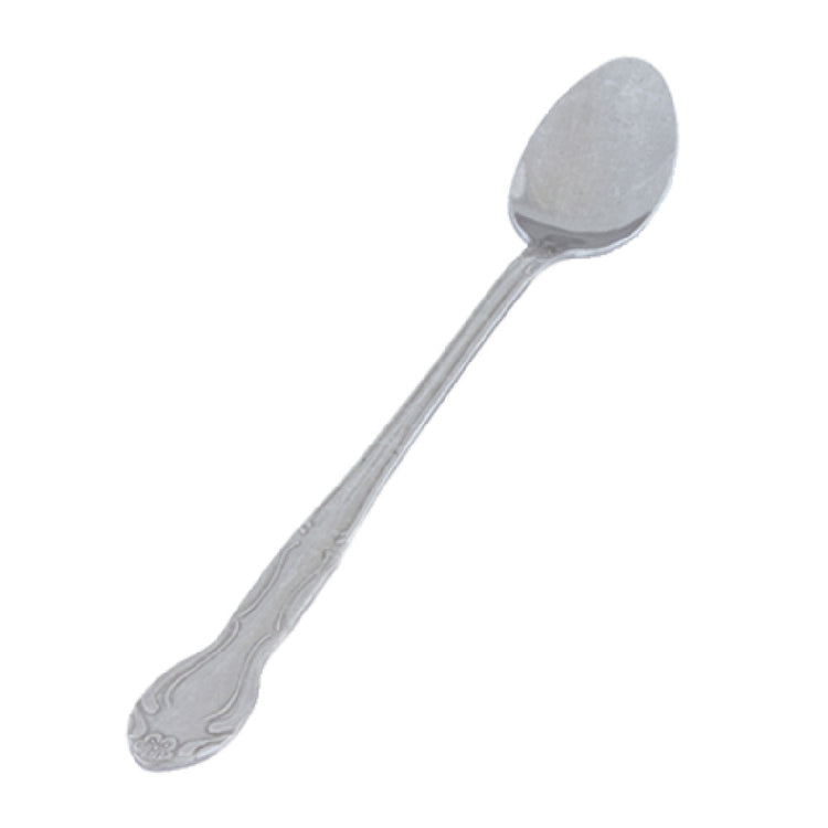 The Crestware BEL712 Ice Teaspoon 8" Scrolled Motif Pattern is a meticulously crafted utensil designed to enhance the dining experience with its elegant aesthetics and durable build. Standing at 8 inches, this ice teaspoon features a sophisticated scrolled motif pattern that adds a touch of class to any table setting. The bright vibro finish enhances its visual appeal, providing a sleek and polished look that complements a variety of dining environments. Made from heavy weight 18/0 stainless steel, the Crestware BEL712 ensures strength and resistance to bending, making it a reliable choice for both casual and formal dining occasions. The use of 18/0 stainless steel also means this teaspoon is economical, offering a cost-effective option for establishments that require a high-quality, durable flatware solution without the added expense of nickel. Ideal for restaurants, hotels, and catering services, the Belinda pattern combines functionality with a decorative flair, making it suitable for diverse market segments within the hospitality industry. Its enduring design and robust construction make the Crestware BEL712 Ice Teaspoon a valuable addition to any cutlery collection, providing both aesthetic appeal and practical utility.