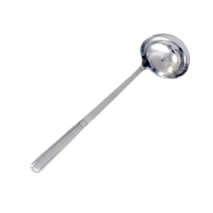 The Crestware BUF9 Ladle 4 Oz. 13" O.A.L is an essential kitchen tool designed for precision and efficiency in any culinary setting. With a capacity of 4 ounces, this ladle is perfect for serving soups, stews, sauces, and more, catering to both commercial and home kitchens. Its overall length of 13 inches ensures a comfortable reach into deep pots and pans, minimizing spills and enhancing control. The 4-1/2 inch hand grip provides a secure and ergonomic hold, reducing hand fatigue during extended use. Constructed with polished stainless steel, the ladle boasts a deep, durable bowl that resists rust and staining, ensuring long-lasting performance and easy cleaning. The hollow handle design helps to keep the utensil lightweight, which is crucial in fast-paced environments where efficiency and speed are paramount. This ladle is ideal for professional chefs, caterers, and home cooks alike, offering a perfect balance of functionality and durability. The Crestware BUF9 Ladle's robust construction and thoughtful design make it a valuable tool in any kitchen, providing reliability and quality that meets the demands of various culinary applications.