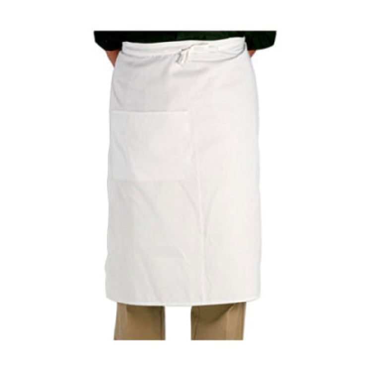 The Crestware BW Bistro Apron - 30" W x 32" L 2-pocket - is a versatile accessory designed to meet the needs of various professionals within the hospitality industry. Constructed from a durable poly/cotton twill blend, this apron combines the softness of cotton with the resilience of polyester, ensuring comfort and longevity even under demanding conditions. Its generous dimensions of 30 inches in width and 32 inches in length provide ample coverage, making it suitable for chefs, waitstaff, and baristas who require both protection and ease of movement during service. The inclusion of two strategically placed pockets enhances functionality, allowing for convenient storage of essential tools and personal items. This feature is particularly beneficial for restaurant staff who need quick access to utensils, order pads, or other small necessities. The apron’s pristine white color offers a classic and professional appearance, making it an ideal choice for establishments that value both style and practicality. With its blend of technical specifications and thoughtful design, the Crestware BW Bistro Apron stands out as a valuable piece of attire for professionals seeking reliability and efficiency in their workwear.