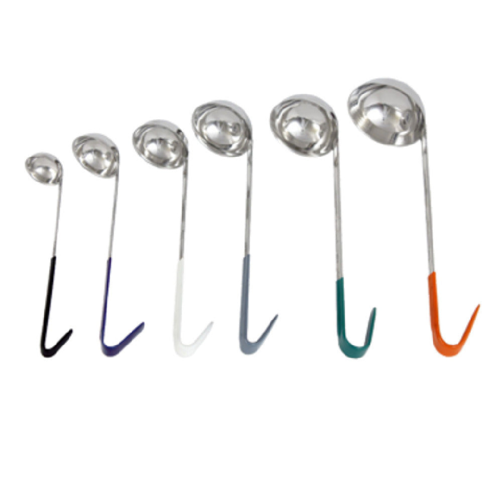 The Crestware CL02 Ladle 2 Oz. 11-1/2" is a meticulously crafted kitchen tool designed to meet the diverse needs of food service professionals. With its precisely measured 2-ounce capacity, this ladle is ideal for portion control, ensuring consistent serving sizes in both commercial kitchens and home settings. Measuring 11-1/2 inches in length, it provides ample reach for accessing deep pots and pans, enhancing convenience for chefs across various culinary environments. The blue silicone handle of the Crestware CL02 not only adds a splash of color but also offers a comfortable grip, reducing hand fatigue during extended use. Silicone's inherent heat-resistant properties make it a safe choice for handling hot liquids, aligning with the safety standards required in professional kitchens. The combination of practical size, ergonomic design, and durable materials makes this ladle a valuable asset for restaurants, catering businesses, and home cooks alike. Whether used for soups, sauces, or stews, the Crestware CL02 Ladle delivers reliable performance and ease of use, underscoring its role as an essential tool in food preparation and service.
