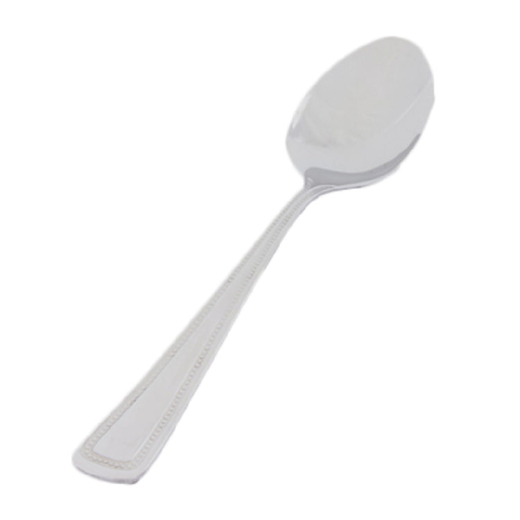 The Crestware CON500 Teaspoon 6" Heavy Weight is a meticulously crafted utensil designed to meet the needs of various market segments within the culinary industry. Measuring precisely 6 inches, this teaspoon is constructed from high-quality 18/0 stainless steel, ensuring durability and a sleek, polished appearance that complements any table setting. The "Heavy Weight" classification signifies its robust design, providing a balanced feel and enhanced resistance to bending, making it ideal for both everyday use in casual dining settings and the rigors of high-volume commercial environments. The Contessa line represents a blend of functionality and elegance, appealing to both domestic users and professional chefs seeking reliable and stylish flatware. This teaspoon's stainless steel composition offers the added benefit of being corrosion-resistant, ensuring longevity and ease of maintenance, which is crucial for maintaining hygiene standards in food service operations. The Crestware CON500 Teaspoon is engineered to seamlessly integrate into diverse dining contexts, providing an essential utility with a touch of sophistication, and effectively supporting the operational demands of restaurants, hotels, catering services, and other hospitality businesses.