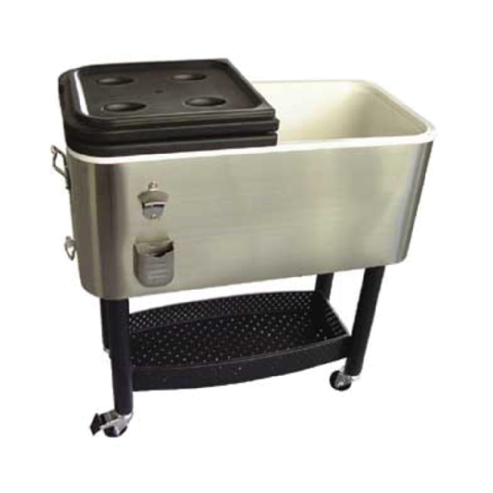 The Crestware COOLER1 Garden Cooler is a versatile and durable solution for outdoor cooling needs. With a capacity of 17 gallons, it measures 31 inches in length, 15-1/4 inches in width, and 13-1/4 inches in height, making it compact yet spacious enough for various cooling applications. When placed on its stand, the total height extends to 34 inches, ensuring convenient accessibility. The cooler features a folding plastic middle lid, which not only provides easy access but also adds to its utility in maintaining a controlled environment for the contents. Its stainless steel casing offers excellent durability and resistance to the elements, while the powder-coated iron base ensures stability and longevity in various outdoor settings. Designed with mobility in mind, the cooler is equipped with four 4-inch commercial wheels, two of which are lockable, facilitating both ease of movement and secure placement. This garden cooler is ideally suited for a range of markets, including hospitality, catering, and event planning, where robust and reliable cooling solutions are essential. Its thoughtful construction and functional design make the Crestware COOLER1 Garden Cooler an excellent choice for professionals seeking a dependable cooling solution with a blend of practicality and durability.