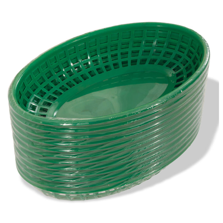 The Crestware FFB96G Food Basket 9" x 5-3/4" x 2-1/4" Oval is a practical and versatile solution for serving and presenting food in various settings. This green plastic basket is designed with precise dimensions of 9 inches in length, 5-3/4 inches in width, and 2-1/4 inches in height, making it an ideal choice for a range of culinary applications, from casual dining to professional food service environments. Its oval shape is particularly suited for holding a variety of food items, enhancing both presentation and functionality. Constructed from durable plastic, this basket offers a lightweight and easy-to-clean option for busy establishments. The vibrant green color adds a touch of style, making it suitable for themed events or branded settings. Importantly, purchase of this product requires a minimum of one dozen units, which underscores its practicality for businesses needing to serve multiple guests simultaneously. The Crestware FFB96G Food Basket is tailored for efficiency and aesthetic appeal, making it a valuable asset for restaurants, cafes, and catering services looking to enhance their service with reliable and attractive serving solutions.