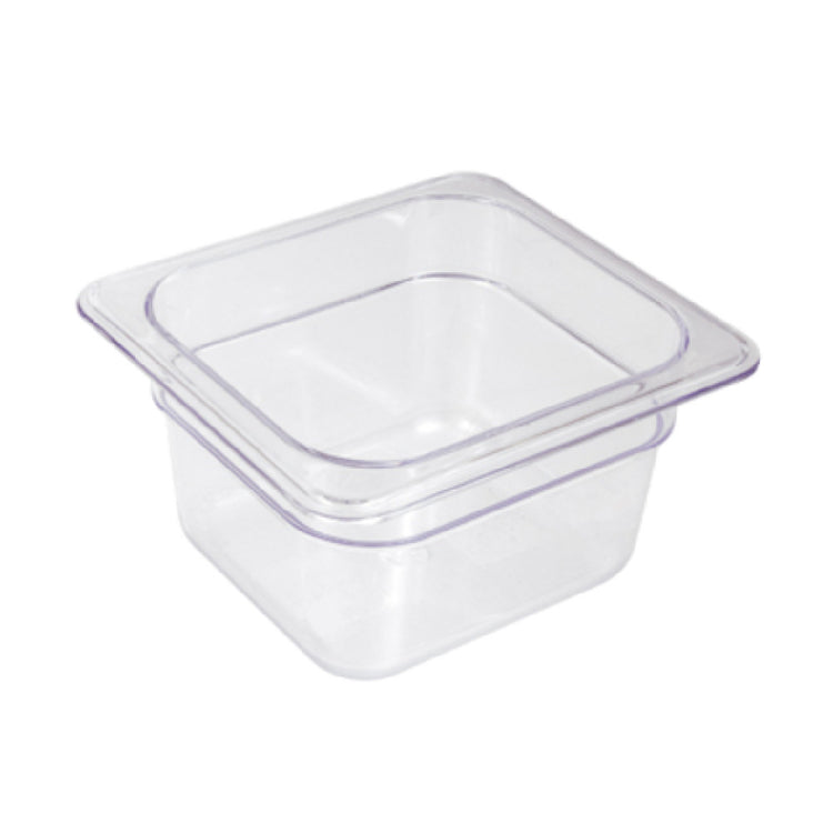 The Crestware FP62 Food Pan is a 1/6 size pan with a depth of 2-1/2 inches, making it an essential component in commercial kitchens and catering services. Constructed from durable polycarbonate, this food pan is designed to be break and crack resistant, ensuring longevity and resilience in high-traffic environments. It can withstand temperatures ranging from 40°F to 210°F, providing versatility for various food storage and preparation needs. Its clear design allows for easy identification of contents, streamlining kitchen operations. The Crestware FP62 is dishwasher safe, offering effortless cleaning and maintenance. This robust food pan is particularly valuable for restaurant chains, buffets, and food service establishments that require reliable, durable, and versatile food storage solutions. Its size and material make it ideal for both hot and cold food items, offering flexibility in menu planning and food presentation. Whether used for storing ingredients or serving prepared dishes, the Crestware FP62 Food Pan is an indispensable tool for maintaining efficiency and organization in any food service operation.