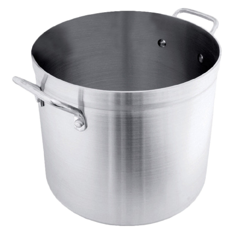 The Crestware HPOT30 Stock Pot is a substantial culinary asset with a 30-quart capacity, specifically designed for high-volume cooking tasks. Its dimensions of 14-1/4 inches in diameter and 12-3/16 inches in depth make it suitable for preparing large batches of soups, stews, or stocks, catering to the needs of restaurants, catering services, and large households. This stock pot is crafted from extra heavy weight 5.0mm thick 3003 aluminum, ensuring exceptional heat conductivity and uniform cooking results. The high-quality construction signifies durability and resilience, essential for frequent use in busy kitchen environments. Furthermore, the pot is NSF certified, which guarantees it meets the rigorous standards for public health protection. This certification is crucial for professional kitchens that prioritize hygiene and safety. The Crestware HPOT30 Stock Pot is an ideal choice for culinary professionals and enthusiasts who require robust, reliable cookware that performs consistently under demanding conditions. Its size and material make it adaptable to various cooking applications, from boiling and simmering to braising, thus providing versatility and efficiency in food preparation across different culinary sectors.