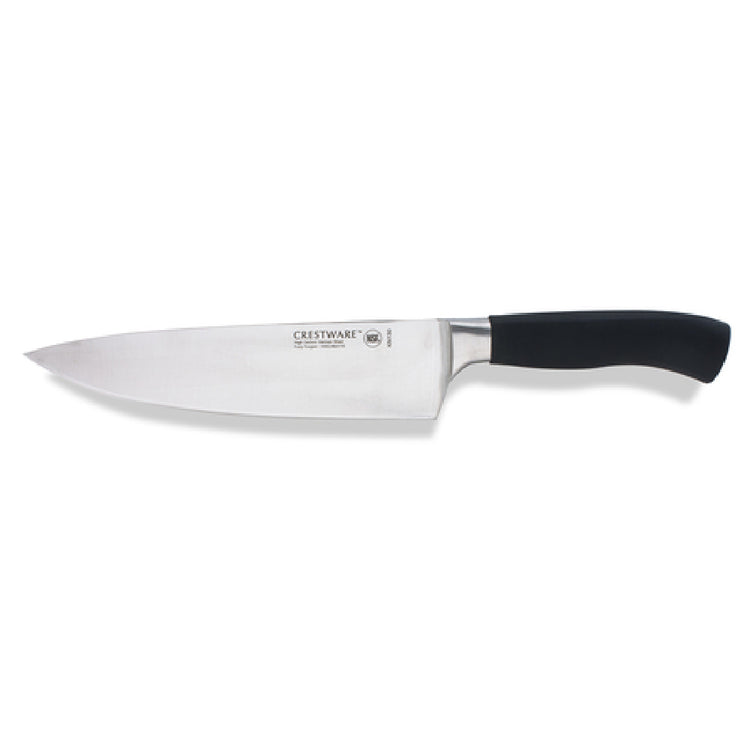 The Crestware KN130 Elite Pro Cooks Knife 8" Forged is a precision tool designed for culinary professionals who value performance and durability. This knife features a forged high carbon German molybdenum vanadium steel blade, known for its exceptional strength and edge retention, making it an essential instrument for intricate kitchen tasks. The 8-inch blade length provides a versatile cutting experience, ideal for slicing, dicing, and chopping a variety of ingredients with ease. Its ergonomic soft grip santoprene handle ensures a comfortable and secure grip, reducing hand fatigue during extended periods of use. The knife is certified by NSF, highlighting its adherence to rigorous public health and safety standards, making it suitable for use in professional kitchens. This knife addresses the needs of chefs who demand precision and reliability in their culinary tools. Its blend of advanced materials and thoughtful design features provides users with a superior cutting experience, making it a valuable addition to any kitchen, whether in a bustling restaurant or a refined culinary school. The Crestware KN130 Elite Pro Cooks Knife represents a commitment to excellence in kitchenware, balancing high performance with ergonomic comfort to meet the diverse needs of culinary professionals across various segments of the food industry.