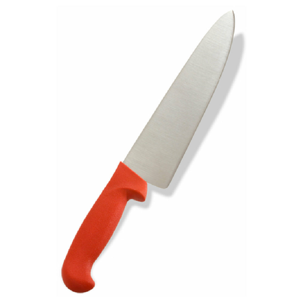The Crestware KN31R Cook's Knife 10" High Carbon German Steel Blade is a precision-focused tool designed to meet the needs of culinary professionals and home chefs alike. Featuring a 10-inch high carbon German steel blade, this knife is crafted for superior sharpness and long-lasting edge retention, making it an essential instrument in any kitchen. The blade's high carbon composition not only contributes to its impressive durability but also offers excellent resistance to stains and corrosion, ensuring it remains pristine even with frequent use. With a polypropylene handle, the knife provides a comfortable and secure grip, reducing the risk of slips during intricate cutting tasks. Its vibrant red color adds a pop of personality while also aiding in color-coded kitchen environments to prevent cross-contamination. The Crestware KN31R is NSF certified, signifying its adherence to rigorous health and safety standards, an important feature for professional culinary settings. Packaged in a clam pack for display, this knife is easily showcased in retail environments. Whether you're a professional chef seeking a reliable workhorse or a cooking enthusiast looking to enhance your kitchen arsenal, the Crestware KN31R Cook's Knife delivers exceptional performance and enduring quality.