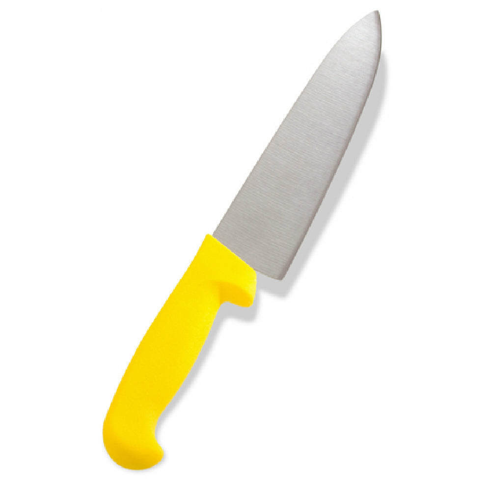 The Crestware KN31Y Cook's Knife 10" is a precision culinary tool crafted for professional chefs and home cooking enthusiasts alike. Featuring a high carbon German steel blade, this knife promises exceptional sharpness and durability, making it a trusted companion in the kitchen. The 10-inch blade length offers ample cutting surface, ideal for slicing, dicing, and chopping a wide variety of ingredients with ease and precision. The polypropylene handle, distinctively designed in a vibrant yellow, ensures a comfortable grip and superior control, reducing hand fatigue during prolonged usage. This color differentiation also aids in preventing cross-contamination in busy kitchen environments. Additionally, the Crestware KN31Y is NSF certified, underscoring its adherence to rigorous safety and health standards, making it a reliable choice for culinary professionals. Packaged in a clam pack for display, this knife is not only functional but also visually appealing, catering to both practical and aesthetic demands in a professional setting. Its construction and design make it an essential tool for chefs seeking a combination of performance, safety, and style.