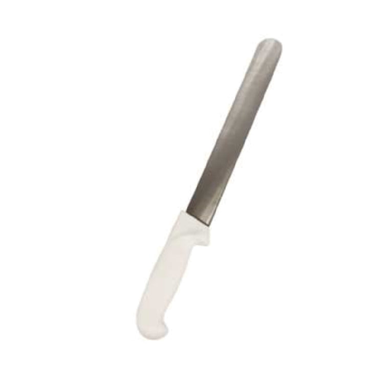The Crestware KN52 Slicer Knife 12" Plain is a professional-grade kitchen tool meticulously crafted for precision and reliability, making it an indispensable asset for culinary professionals across various industry sectors. Featuring a 12-inch plain blade made from high carbon German steel, this slicer knife offers remarkable sharpness and durability, ensuring efficient and smooth slicing through a variety of food items. The blade’s high carbon content enhances its edge retention and resistance to wear, making it ideal for repeated use in demanding environments. Complementing the superior blade is a polypropylene handle designed for ergonomic comfort and slip resistance, promoting safety and ease of use during prolonged cutting tasks. The handle’s durable construction withstands the rigors of commercial kitchens, ensuring longevity and consistent performance. The Crestware KN52 Slicer Knife is NSF certified, signifying its compliance with rigorous food safety standards and making it suitable for use in professional culinary settings. Packaged in a clam pack for display, this slicer knife combines innovative design with functional excellence, making it a perfect choice for chefs, caterers, and food service establishments seeking a reliable and efficient slicing solution.