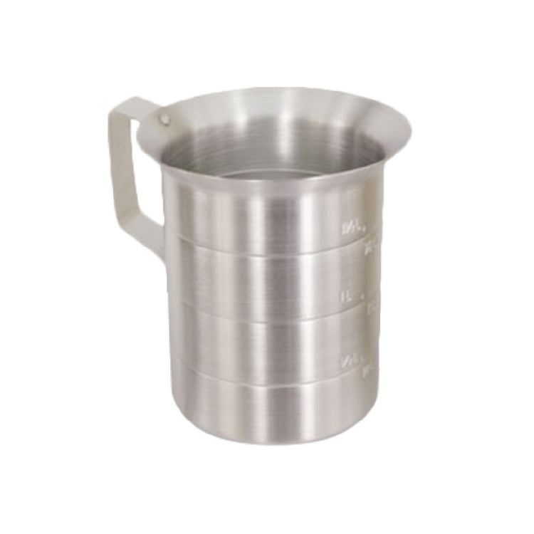The Crestware MEA02 Liquid Measuring Cup 2 qt. with pouring lip is a versatile tool essential for both professional kitchens and home cooking enthusiasts. Constructed from durable aluminum, this measuring cup is designed to withstand the rigors of frequent use while providing precise liquid measurements. Its 2-quart capacity makes it suitable for handling larger volumes, ideal for culinary tasks that require precision and efficiency. The inclusion of a well-designed pouring lip ensures smooth and accurate pouring, minimizing spills and enhancing the user experience. This feature is particularly beneficial in environments where precision is paramount, such as in bakeries and professional kitchens. The Crestware MEA02's robust build and practical design make it an excellent choice for chefs and home cooks alike who value reliability and precision in their kitchen equipment. Its simple yet effective design caters to a wide range of culinary applications, making it a valuable addition to any kitchen toolkit. Whether used in a high-paced restaurant setting or for everyday cooking at home, this measuring cup stands out for its functionality and durability, offering consistent performance across various cooking tasks.