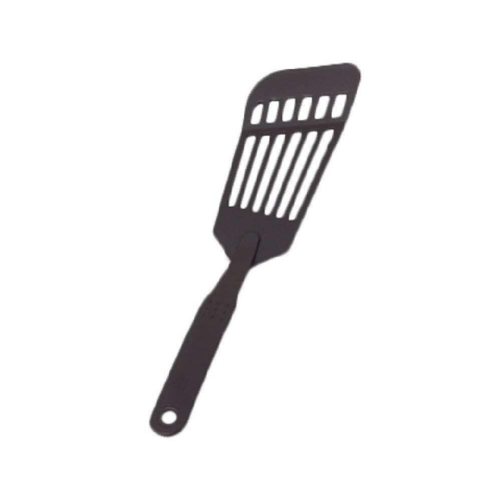 The Crestware NY6 Fish Turner 12" Slotted is a practical and versatile tool designed with the needs of professional kitchens in mind. Measuring 12 inches in length, this fish turner is expertly crafted from durable black nylon, providing both strength and flexibility. The slotted design is particularly beneficial for chefs, as it allows for efficient drainage of excess liquids and oils when handling delicate fish fillets or other food items. This feature not only enhances the cooking process but also ensures that the food is presented in its best possible form. The nylon material is gentle on non-stick cookware surfaces, preventing scratches and extending the life of your kitchenware. Additionally, the ergonomic design of the Crestware NY6 Fish Turner ensures a comfortable grip, making it easier to maneuver even the most delicate dishes with precision and confidence. Its lightweight construction makes it an ideal choice for a variety of culinary environments, from bustling restaurant kitchens to home cooking enthusiasts seeking professional-quality tools. This fish turner is a valuable addition to any kitchen, providing both functionality and durability that meet the demands of different market segments within the culinary industry.