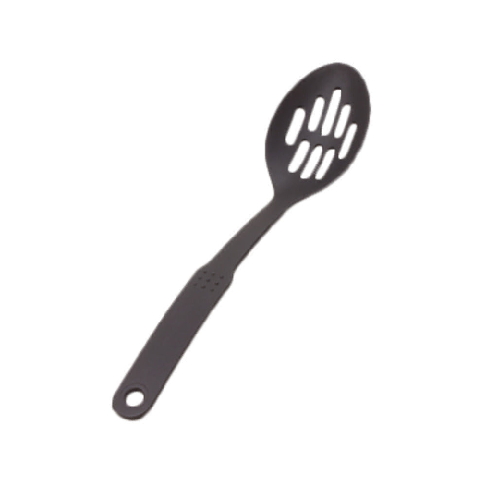 The Crestware NY7 Spoon 12" Slotted is a kitchen essential, crafted with precision for diverse culinary needs. This utensil features a 12-inch length, providing ample reach and control for a variety of cooking tasks. Made from durable nylon, the spoon is both sturdy and heat-resistant, ensuring longevity and safety in high-temperature environments. The black finish not only adds a sleek, modern touch but also ensures compatibility with different kitchen aesthetics. Its slotted design allows for efficient draining of liquids, making it particularly useful in preparing dishes that require separation of solids from liquids. This makes the Crestware NY7 Spoon a versatile tool ideal for professional chefs, home cooks, and food service establishments. Whether you're stirring, serving, or straining, the ergonomic build of this spoon ensures ease of use and minimizes hand fatigue. Its robust construction and functional design make it a reliable choice for those seeking quality and efficiency in their kitchen utensils. With its specialized features, the Crestware NY7 Spoon 12" Slotted stands out as a valuable addition to any culinary toolkit, offering practical solutions tailored to meet the demands of different market segments within the food industry.