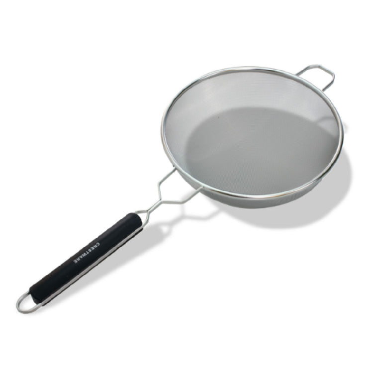 The Crestware PHSSF10 Strainer 10" Fine Single Mesh is an expertly crafted kitchen tool, ideal for both professional chefs and home cooking enthusiasts. Featuring a 10-inch diameter, this strainer is equipped with fine single mesh, ensuring efficient and precise straining of sauces, broths, and other culinary preparations. The mesh is designed to catch even the smallest particles, contributing to a smooth and refined final product. Constructed with double-coated tin, the strainer is built for durability and longevity, resisting wear and corrosion over time. The black plastic handle provides a comfortable grip, enhancing ease of use while maintaining heat resistance during operation. This strainer is a versatile addition to any kitchen, suitable for applications ranging from sifting dry ingredients to washing produce. Its thoughtful design and high-quality materials make it an indispensable tool for achieving professional-grade results in various culinary settings. Whether used in a bustling restaurant environment or a home kitchen, the Crestware PHSSF10 Strainer delivers reliable performance, making it a valuable asset for anyone seeking precision and efficiency in food preparation.