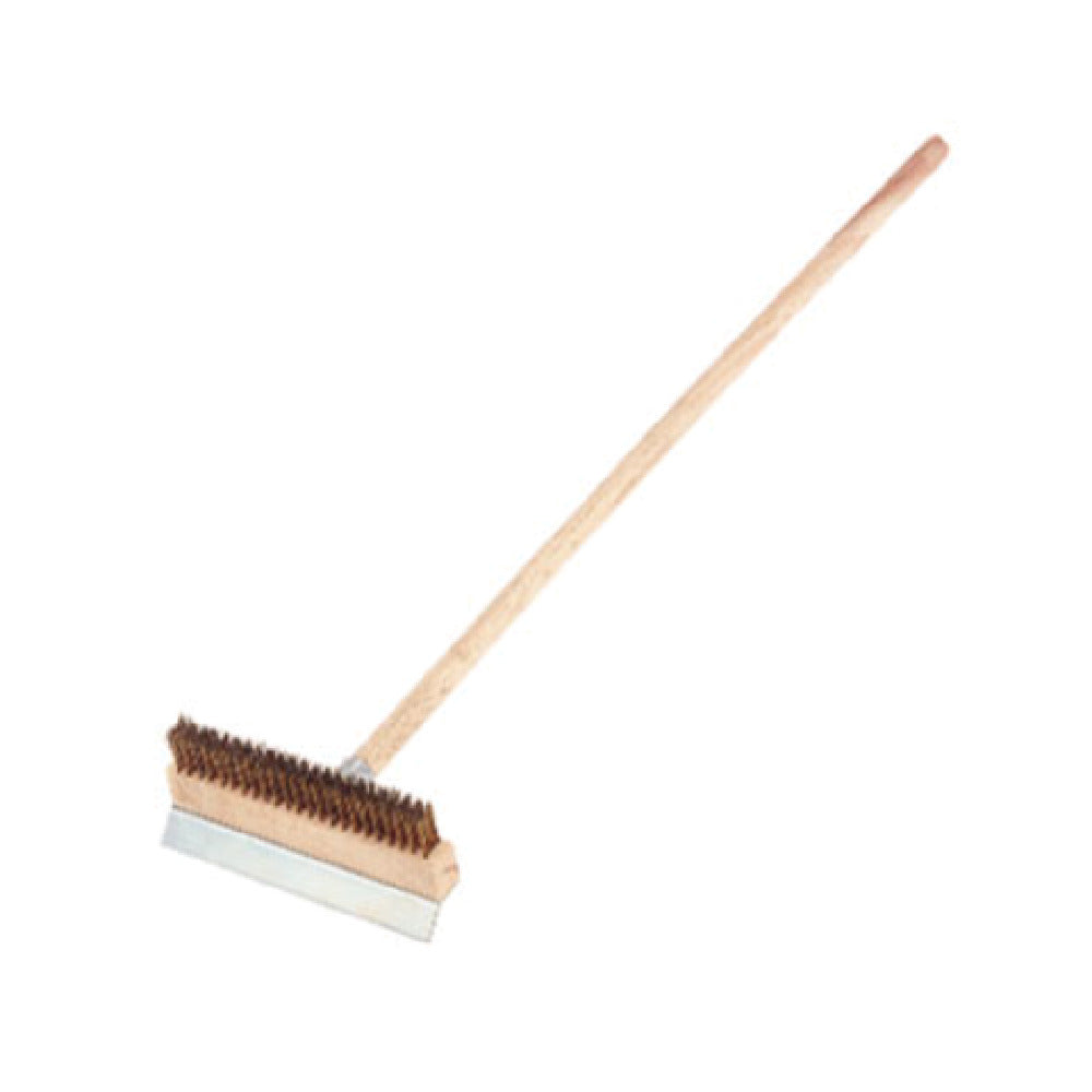 The Crestware POB40 Pizza Oven Brush 40" long is a specialized cleaning tool designed for optimal maintenance and care of pizza ovens. With a total length of 40 inches, it provides the necessary reach to clean deep and hard-to-access areas within large commercial ovens, making it particularly valuable for busy pizzerias and restaurants that require quick and efficient maintenance solutions to ensure ongoing operational efficiency and hygiene. This brush is crafted to withstand the high-temperature environment of pizza ovens, offering durability and reliability, which are essential for heavy-duty and frequent use. Its elongated design not only facilitates comprehensive cleaning but also ensures user safety by keeping hands away from hot surfaces. This makes the Crestware POB40 a practical choice for various market segments within the food service industry, including family-owned pizzerias, high-volume fast-food chains, and fine-dining establishments that rely on wood-fired ovens. The robust construction of this brush indicates a commitment to quality and attention to the unique needs of culinary professionals. By choosing the Crestware POB40, operators can maintain their pizza ovens with precision and care, thereby extending the life and performance of their equipment and ensuring the consistent delivery of high-quality baked goods.
