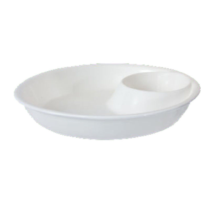 The Crestware SER14 Dip Tray 12" Round is a versatile serving piece, meticulously designed for both aesthetic appeal and functionality in diverse dining settings. Crafted from fully vitrified ceramic, this dip tray ensures exceptional durability and a sophisticated presentation, making it a valuable addition to any dining ensemble. Its pearl white color complements various table settings, enhancing the visual appeal of appetizers or shared dishes. Measuring 12 inches in diameter, the round shape offers ample space for serving a variety of dips, sauces, or small snacks. This product is a part of the Servizio collection and is available exclusively in full case quantities, with each case containing eight dip trays, facilitating easy bulk purchasing for restaurants, catering services, and event planners. The Crestware SER14 Dip Tray stands out for its combination of elegance and practicality, suitable for high-volume food service environments that prioritize both style and reliability.