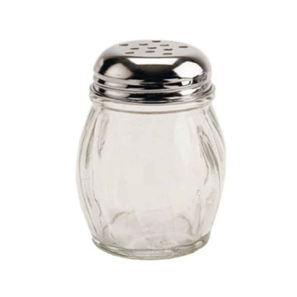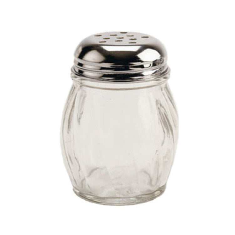 The Crestware SHKR04SP Cheese Shaker 6 Oz. With Out Handle is a meticulously designed culinary tool, perfect for both professional kitchens and home use. This cheese shaker is crafted from swirled glass, offering a visually appealing texture that stands out in any setting. With a capacity of 6 ounces, it provides ample volume for storing and dispensing grated cheese or other condiments. The stainless steel perforated top ensures durability and effective distribution, making it a reliable addition to any tabletop or kitchen counter. The elegant design, free from any handle, adds a sleek and modern look while also allowing for easy storage and handling. Ideal for use in restaurants, cafes, or even at home, this cheese shaker is a versatile accessory that can cater to various market segments looking for functional and aesthetically pleasing kitchenware. Its simple yet effective construction highlights Crestware's commitment to quality and utility in food service equipment. Whether you're serving pizza, pasta, or salads, the Crestware SHKR04SP Cheese Shaker is a practical choice for dispensing seasonings with ease and style.