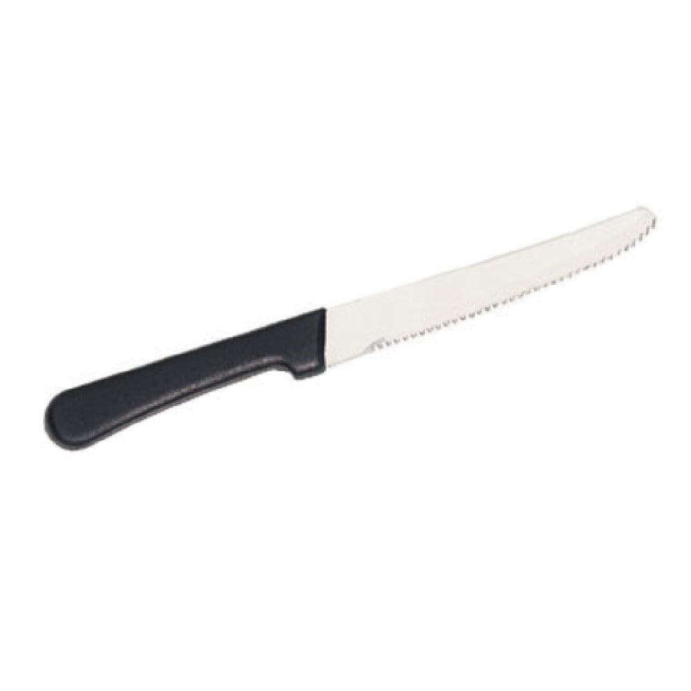 The Crestware SKPR2 Steak Knife is a meticulously crafted culinary tool designed to enhance the dining experience with precision and ease. This steak knife features a 4-7/8" blade, perfectly balanced with an overall length of 9", ensuring optimal control and comfort for the user. The blade's round tip is a thoughtful design choice, providing safety without compromising on effectiveness. Complementing the blade is a sturdy plastic handle, offering durability and ease of maintenance, making it an ideal choice for both professional and home settings. This knife's ergonomic design caters to various segment markets, from hospitality and catering services to home kitchens seeking quality cutlery that combines functionality with aesthetic appeal. The Crestware SKPR2 is not just a tool but a testament to precision engineering, promising long-lasting performance. Its unique value proposition lies in its blend of safety-focused design, practical dimensions, and robust materials, presenting a versatile addition to any cutlery collection. Aimed at professionals and culinary enthusiasts alike, this steak knife delivers exceptional performance, underlining its place as a staple in the cutlery industry.