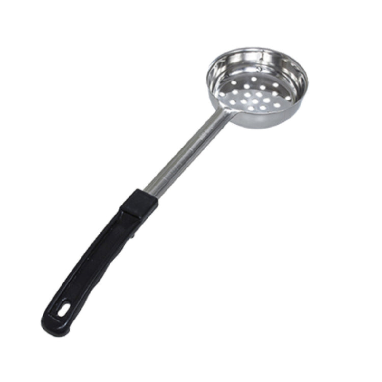 The Crestware SPO6P Portion Controller 6 Oz. Perforated is expertly crafted from 18/8 stainless steel, ensuring long-lasting durability and resistance to corrosion. This robust kitchen tool is specifically designed for precision and efficiency in portion control, making it a vital asset for culinary professionals and food service establishments. With a capacity of 6 ounces, the perforated design allows for effective draining of liquids, making it ideal for portioning foods such as vegetables, pasta, or proteins in commercial kitchens. The color-coded handle, in a sleek black finish, not only enhances grip and handling but also aids in quick identification within a multi-tool setup, promoting efficiency and reducing cross-contamination risks. This makes it versatile for use in various sectors, including restaurants, catering services, and institutional dining facilities, where precision and speed are paramount. The Crestware SPO6P Portion Controller exemplifies the perfect blend of functionality and design, meeting the diverse needs of food service professionals who require dependable tools for consistent and accurate food preparation.