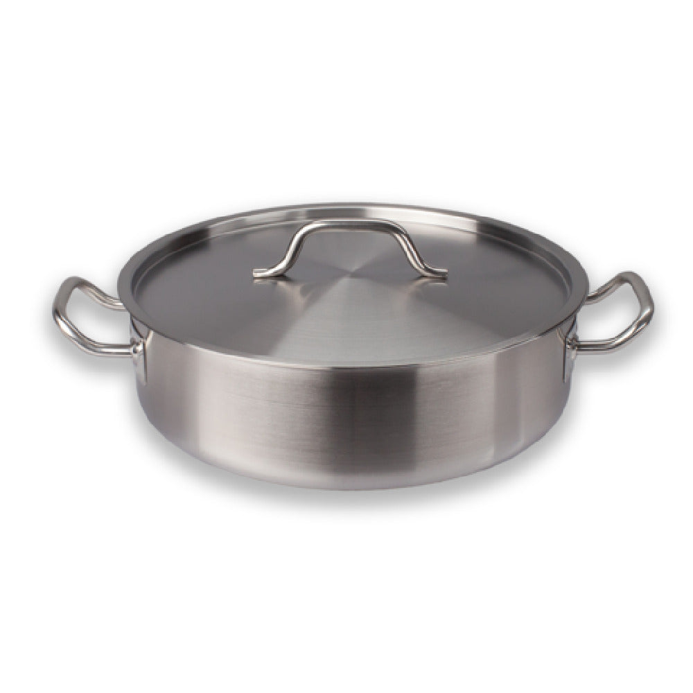 The Crestware SSBZR11 Brazier & Cover is an exceptional 11-quart culinary tool, expertly crafted to meet the demands of professional kitchens and gourmet home cooks alike. Measuring 17 inches in width, 16 inches in depth, and 13 inches in height, this brazier offers ample capacity for preparing large quantities of food, making it an ideal choice for catering services, restaurants, and family gatherings. Constructed from high-quality stainless steel, the SSBZR11 guarantees durability and resistance to corrosion, ensuring long-lasting performance in high-intensity cooking environments. This material not only enhances heat distribution but also facilitates easy cleaning, a crucial feature for maintaining hygiene standards in foodservice operations. The brazier's design includes a matching cover, which helps to retain moisture and flavors, enhancing the overall cooking process. Its robust construction and generous size make the Crestware SSBZR11 Brazier & Cover a versatile and indispensable asset for chefs who require reliability and efficiency in their culinary endeavors. Whether you're searing, roasting, or simmering, this brazier promises to deliver consistent results with each use, underscoring its value as a staple in any professional kitchen setting.