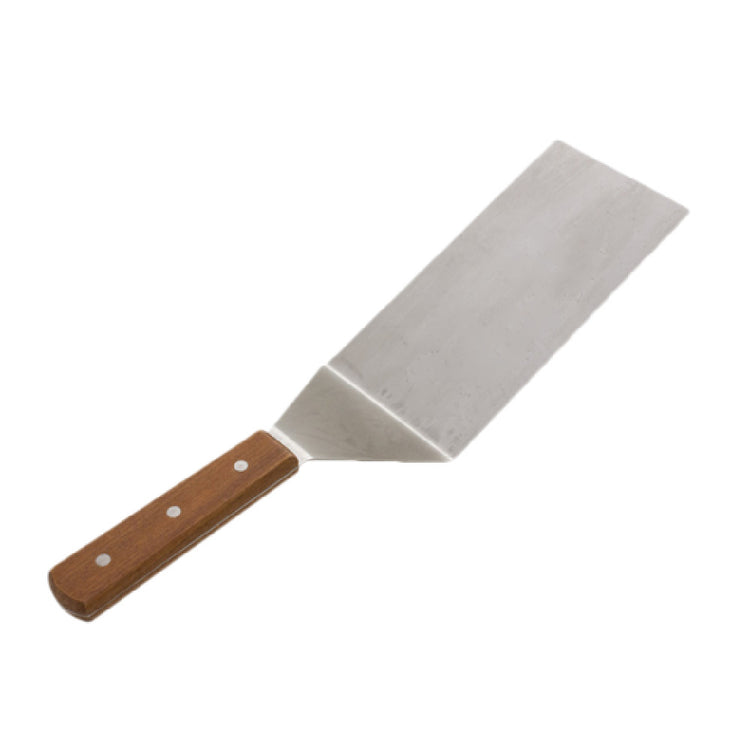 The Crestware WHT84 Turner 8" x 4" Square End is a versatile kitchen tool designed to meet the needs of both professional chefs and home cooks. Featuring an 8-inch by 4-inch solid, flexible stainless steel blade, this turner provides the durability and precision required for a variety of cooking tasks. The square end design of the blade ensures a wide surface area, making it ideal for flipping and turning foods with ease. The flexible nature of the stainless steel blade allows for a delicate touch, perfect for handling fragile foods such as fish fillets or delicate pastries without damaging them. Additionally, the turner is equipped with a wooden handle which not only adds a classic aesthetic but also offers a comfortable grip for prolonged use. This combination of materials makes the Crestware WHT84 Turner a reliable and efficient choice for effortless cooking, catering to the diverse needs of the food service industry. Whether in a bustling restaurant kitchen or a cozy home setting, this turner’s robust construction and practical design make it an essential tool for everyday use, offering both functionality and style.