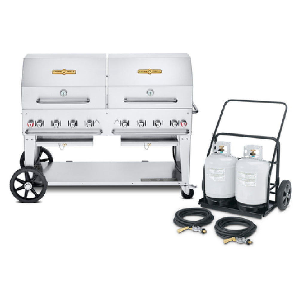 Crown Verity CV-MCC-60RDP Club Series Mobile Cart Grill With Tank Cart LP Gas