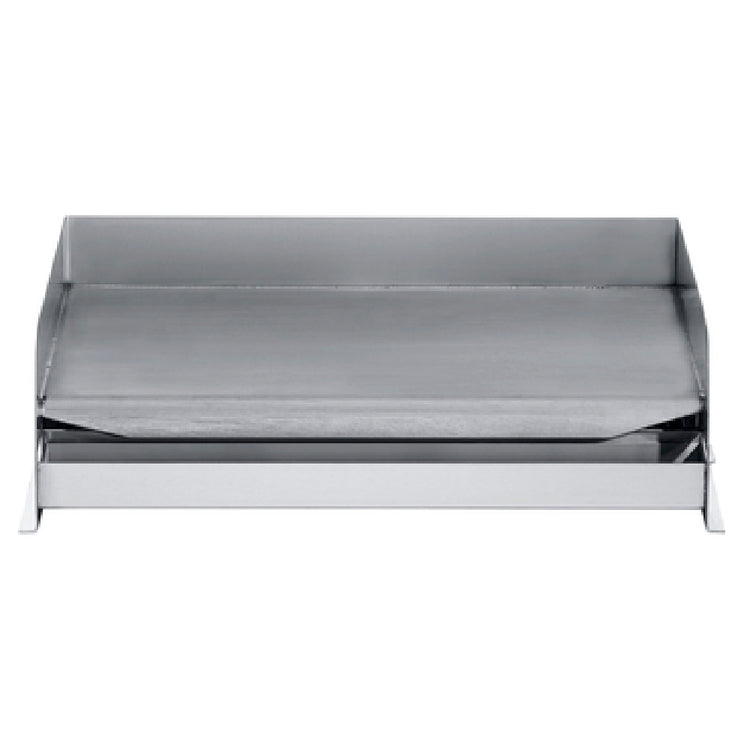 The Crown Verity CV-PGRID-24 Removable Griddle stands out in the Professional Series, offering precise specifications tailored for culinary professionals. This griddle features dimensions of 24 inches in width, 23-1/2 inches in depth, and 7-1/2 inches in height, showcasing its compact yet spacious design suitable for various cooking environments. The cooking surface is crafted from 5/16-inch thick cold-rolled steel, ensuring optimal heat retention and even cooking results. The griddle includes stainless steel splash guards, providing a clean, efficient cooking space by preventing splatter. Additionally, it comes with a removable stainless steel grease tray for convenient cleanup, enhancing its practicality. This griddle is specifically engineered for use on Crown Verity gas grills only, ensuring a perfect fit and performance when paired with these devices. Its robust construction and specialized features make it an ideal choice for professional chefs and culinary establishments seeking reliable and efficient cooking equipment. The Crown Verity CV-PGRID-24 embodies durability, practicality, and professional-grade performance, making it a valuable asset for various segments within the food industry, including restaurants, catering services, and outdoor cooking venues where precision and efficiency are paramount.